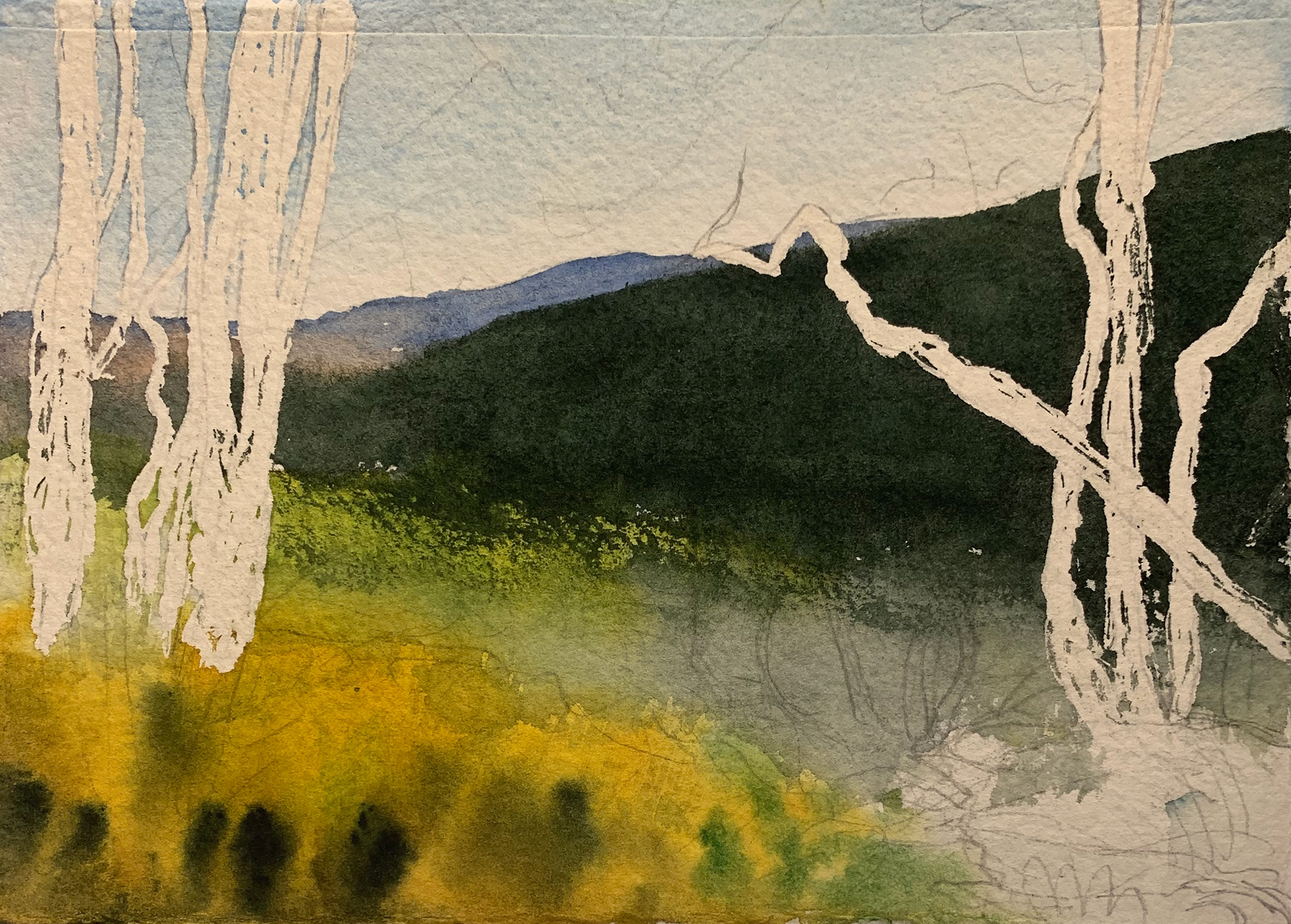 Add dark color for trees and using ink and broken branch to draw in branch/bushes details